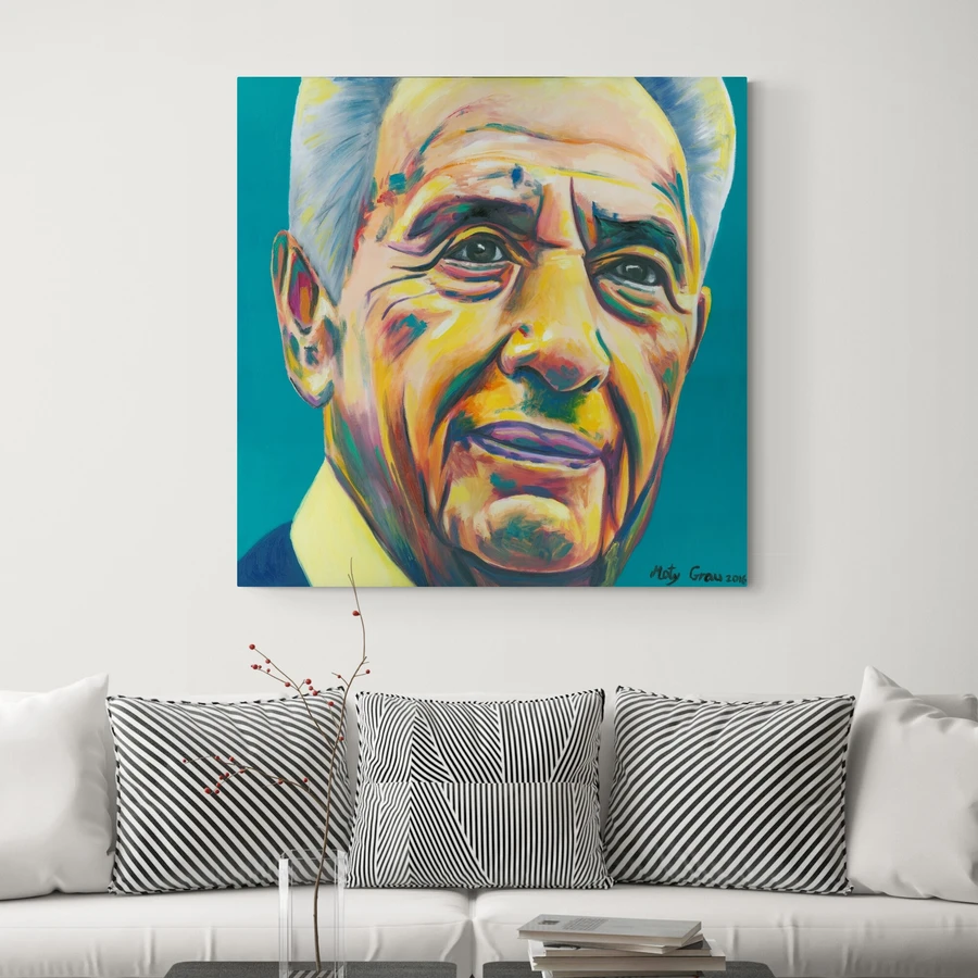 שמעון פרס - הדפס משודרג עם צבע בגווני שחור ולבן